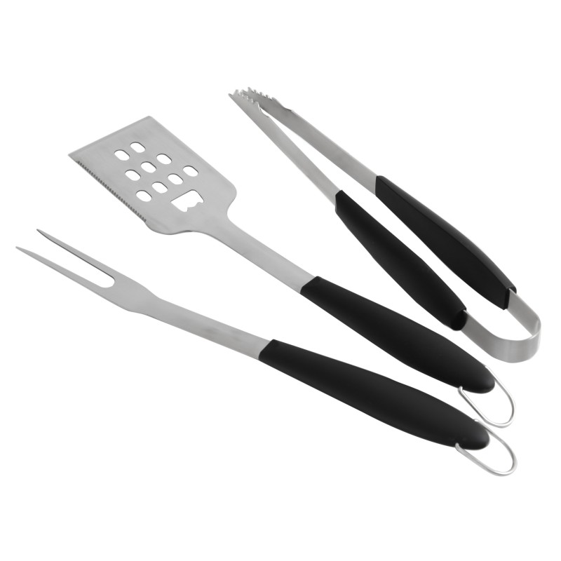 DESCRIPTIF PRODUIT: Set de 3 ustensiles LE MARQUIER en inox composé d’une spatule, d’une fourchette et d’une pince puvant être suspenduesMENTIONS OBLIGATOIRES: Inox