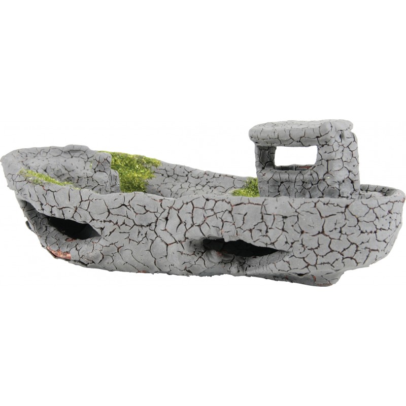 Décor Epave en céramique pour aquarium, inspirés des paysages sicilliens après l'éruption du volcan ETNA. Le boulet est recouverte d'une mousse synthétique. Etant creuse, elle peut également servir de cachettes pour les poissons.