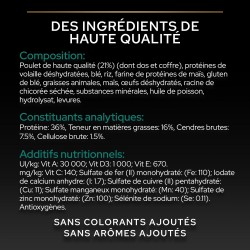 Contient du Poulet de haute qualité en 1er ingrédient. Sans colorants ajoutés. Sans arômes ajoutés. Contient OPTIRenal® est une formulation unique pour maintenir des reins en bonne santé.