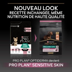Une peau sensible ne devrait pas entacher le bien-être de votre chiot. PURINA PRO PLAN Small & Mini Puppy Sensitive Skin avec OPTIDERMA est une alimentation complète pour chiots sous forme de croquettes, contenant une combinaison spécifique de nutriments essentiels, cliniquement prouvés pour aider à maintenir la bonne santé de la peau et du poil.