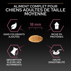 Cette alimentation complète est riche en saumon et contient tous les nutriments essentiels dont votre chien a besoin pour un mode de vie sain et actif. Elle soutient également la bonne santé des articulations. Aidez-le à dépasser les obstacles quotidiens et les troubles liés à une peau sensible grâce aux croquettes PURINA PRO PLAN Medium Adult avec OPTIDERMA.