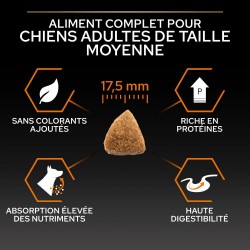 Formulée avec des morceaux de poulet, PURINA PRO PLAN Medium Adult avec OPTIBALANCE permet à votre chien de profiter d'une absorption optimale des nutriments à chaque repas afin qu'il profite de chaque instant de la vie.