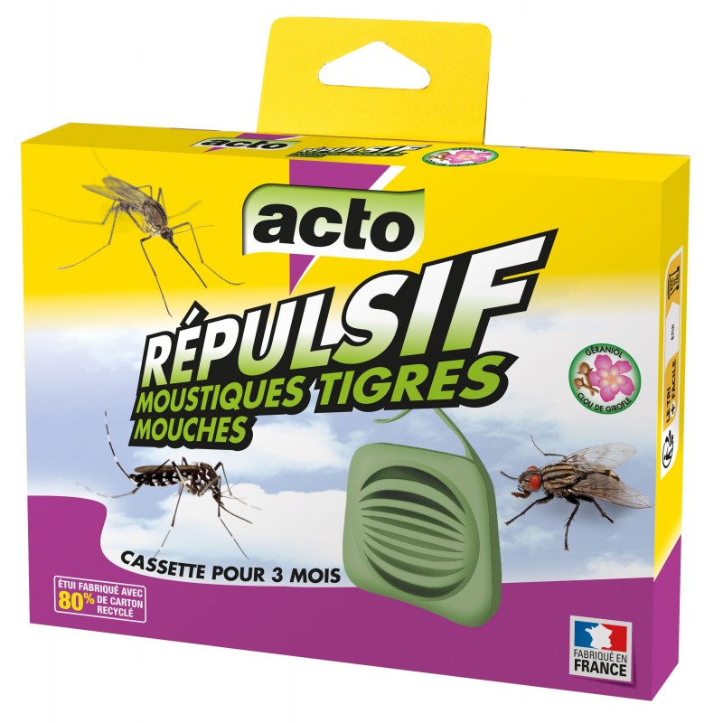 • Repousse les mouches et les moustiques. • Cassette diffusante contenant un répulsif à base de géraniol parfumé au clou de girofle. • À poser ou à suspendre. Livrée dans un étui brochable. • Action longue durée : 3 mois de protection pour une pièce de 40 m3 ou 16 m2.