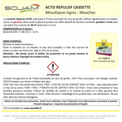 MENTIONS OBLIGATOIRES: Utilisez les biocides avec précaution. Avant toute utilisation, lisez l'étiquette et les informations concernant le produit. ATTENTION Contient du géraniol et de l'huile essentielle de clou de girofle. H317 Peut provoquer une allergie cutanée. H319 Provoque une sévère irritation des yeux. P102 Tenir hors de portée des enfants. P302 + P352 EN CAS DE CONTACT AVEC LA PEAU : laver abondamment à l'eau et au savon. P305 + P351 + P338 EN CAS DE CONTACT AVEC LES YEUX : rincer avec précaution à l'eau pendant plusieurs minutes. Enlever les lentilles de contact si la victime en porte et si elles peuvent être facilement enlevées. Continuer à rincer. P501 Eliminer l'emballage et le produit dans une déchetterie. Ne pas jeter dans les ordures ménagères