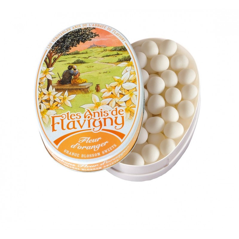 MENTIONS OBLIGATOIRES: INGREDIENTS :du sucre, arôme naturel et extrait de fleur d’oranger et une graine d'anis vert (0.2%) au coeur du bonbon.
