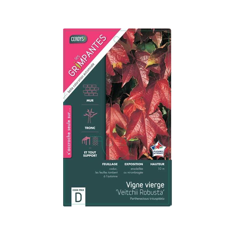 Plante grimpante rustique, à feuillage caduc, munie de vrilles à ventouses qui lui permettent de s'accrocher seule à son support. Grande vigueur. Belle coloration automnale. Utilisation : Contre un grand mur. Couverture de constructions (garage) et autres supports en bois s'ils ne nécessitent pas de traitement régulier.