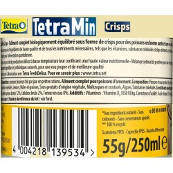 Aliment complet sous forme de mélange de crisps renfermant des nutriments fonctionnels de haute qualité pour l'alimentation quotidienne de tous les poissons d'ornement. Favorise la croissance saine, la vitalité et l'éclat des couleurs des poissons. Aliment complet sous forme de mélange de crisps pour tous les poissons d'ornement d'eau douce. Fabriqué selon le procédé Tetra spécial délicat à basse température pour une haute valeur nutritionnelle. Crisps flottant longtemps avant de couler lentement, idéaux pour les bacs communautaires. Mélange de plus de 40 matières premières de haute qualité. La formule BioActive maintient un système immunitaire sain. Prébiotiques aidant à soutenir les fonctions corporelles et à améliorer le taux de conversion alimentaire. Favorise la croissance saine des poissons et la clarté de l'eau.