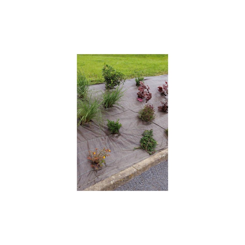 Toile tissée en polypropylène vert / noir et marron / noir.90 g/m².Bandes horizontales de plantation vertes tous les 15 cm.